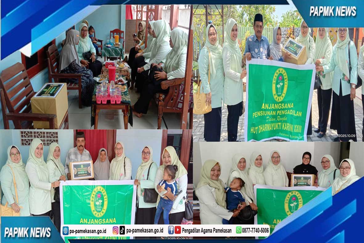 Dharmayukti Karini Cabang Pamekasan menggelar Anjangsana Dalam Rangka HUT Dharmayukti Karini - XXIII pada Kamis, 09 Oktober 2022. Adapun yang menjadi sasaran kegiatan ini yaitu melakukan kunjungan ke rumah para pegawai pengadilan yang sudah purnabakti. Tujuan Anjangsana ini adalah untuk terus menjalin silaturahmi dengan pegawai yang sudah purna tugas atau pensiun.