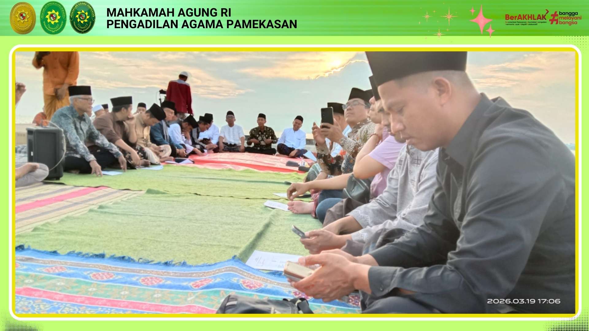 PAMEKASAN – Hakim Pengadilan Agama Pamekasan, Ismail, S.Ag., M.H.I., menghadiri undangan resmi Kementerian Agama Kabupaten Pamekasan dalam pelaksanaan rukyatul hilal untuk penetapan awal bulan Syawal 1447 Hijriah pada Kamis (19/03/2026). Kegiatan yang dipusatkan di Dermaga Branta Pesisir ini dimulai tepat pada pukul 16.00 WIB hingga selesai dengan dihadiri oleh berbagai unsur terkait. Kehadiran perwakilan pengadilan bertujuan untuk memberikan legalitas formal serta memastikan proses pemantauan berjalan sesuai dengan ketentuan hukum syariah.
