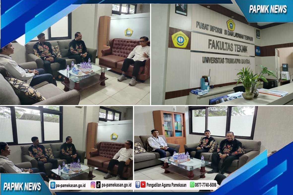 Jajaran Pimpinan Pengadilan Agama Pamekasan berkunjung dan bersilaturahmi ke Fakultas Teknik Universitas Trunojoyo Madura pada Senin, 20 Oktober 2025. Hadir dalam kunjungan tersebut Ketua Pengadilan Agama Pamekasan, Dr. H. Muhammad Najmi Fajri, S.H.I., M.H.I., didampingi Panitera Pengadilan Agama Pamekasan – Muhammad Ali Said, S.H.I., M.H., dan Kasubag PTIP Pengadilan Agama Pamekasan – Bambang Wahyudiono, S.H.. Kunjungan dari Pengadilan Agama Pamekasan diterima langsung oleh Dekan Fakultas Teknik Universitas Trunojoyo Madura.