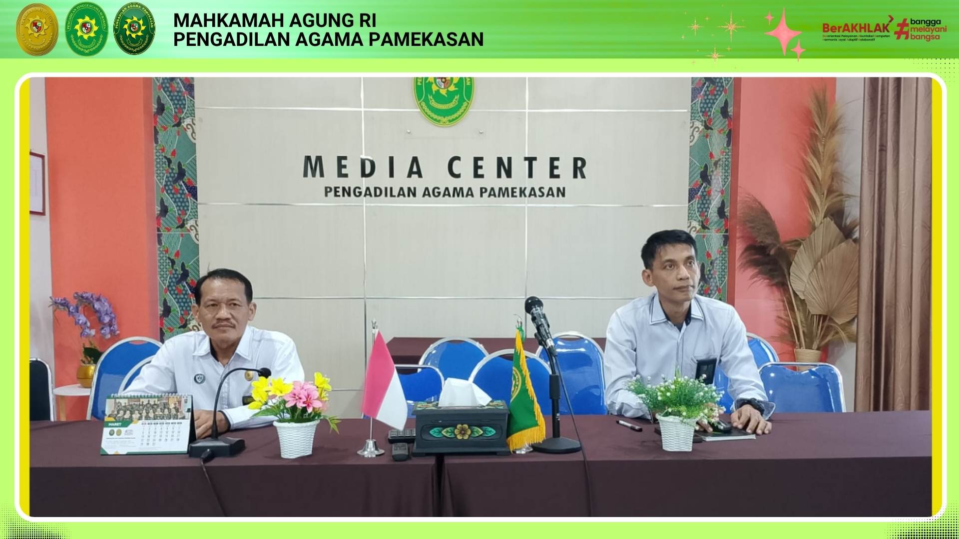 Pengadilan Agama Pamekasan menghadiri kegiatan Pembinaan dan Rapat Monitoring Penerimaan Negara Bukan Pajak secara daring pada Senin, 20 April 2026. Panitera Muhammad Ali Said, S.H.I., M.H., bersama Sekretaris Trimo, S.H., M.H., mengikuti jalannya agenda tersebut melalui aplikasi Zoom dari ruang Media Center. Pertemuan yang diselenggarakan oleh Pengadilan Tinggi Agama Surabaya ini bertujuan untuk menyelaraskan kebijakan pengelolaan keuangan negara di lingkungan peradilan.