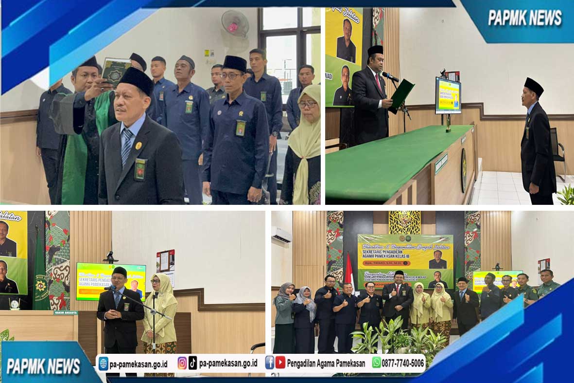 Dimulai pada pukul 08.00 WIB, acara diawali dengan pembukaan dengan pembacaan Basmalah, menyanyikan lagu Indonesia Raya dan Hymne Mahkamah Agung RI, Mars PA Pamekasan dan pembacaan doa. Kemudian pembacaan Surat Keputusan dan dilanjutkan Pelantikan dan Pengambilan Sumpah Jabatan oleh Ketua Pengadilan Agama Pamekasan kepada Sekretaris Pengadilan Agama Pamekasan yang baru. Kemudian penandatanganan Berita Acara sumpah dan Pakta Integritas. Seusai pelantikan acara dilanjutkan dengan sambutan perkenalan dari Sekretaris baru Bapak Trimo, S.H., M.H. Dalam sambutannya “Mohon bimbingan dari Bapak Ketua beserta Para Hakim dan seluruh Aparatur Pengadilan Agama Pamekasan agar bisa bekerjasama untuk mengapai apa yang kita cita-citakan bersama”.