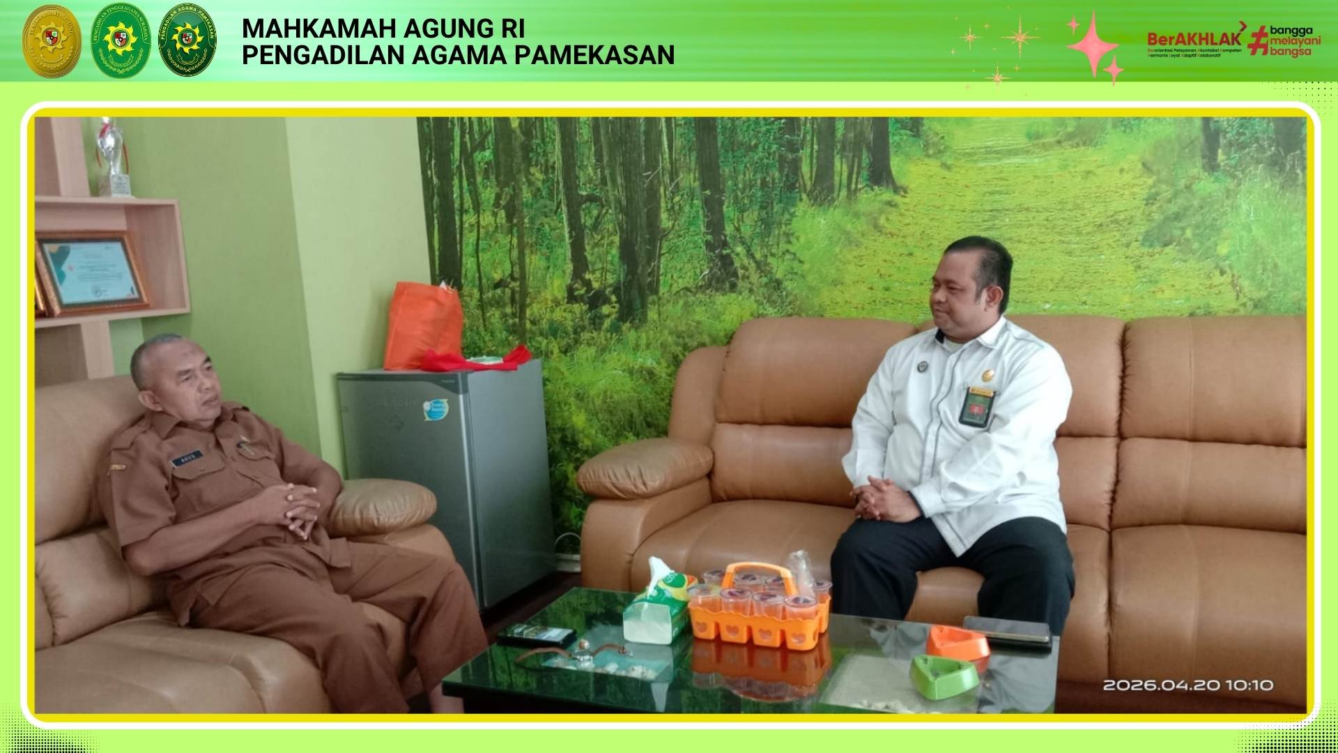 Kedatangan Ketua PA Pamekasan disambut dengan penuh kehangatan oleh Kepala Dinas Dukcapil Kabupaten Pamekasan secara langsung di ruang kerja beliau. Suasana pertemuan berlangsung akrab namun tetap formal dengan agenda pembahasan mengenai peningkatan koordinasi administrasi kependudukan. Kedua belah pihak saling bertukar pikiran mengenai kendala teknis yang sering dihadapi dalam proses sinkronisasi data bagi masyarakat pencari keadilan.