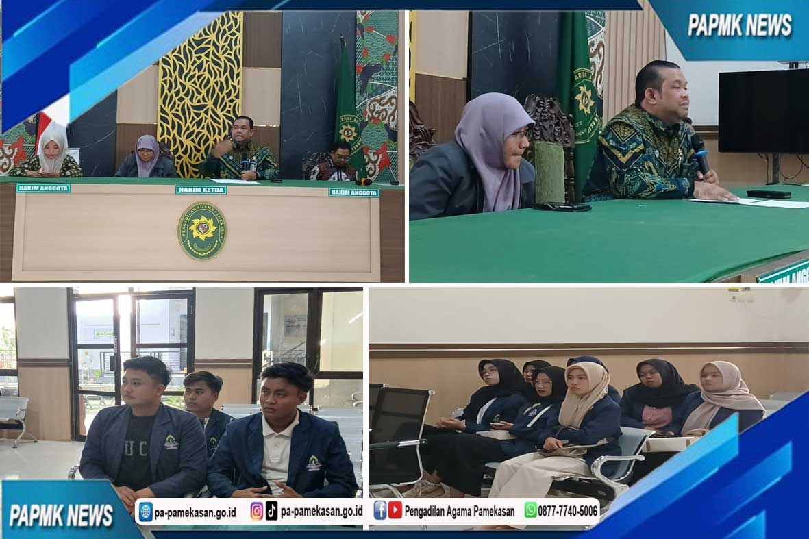 “Sebagai upaya quality control, mahasiswa magang di Pengadilan Agama Pamekasan perlu diterapkan suatu standar penilaian, agar para mahasiswa dinyatakan siap untuk melaksanakan program tersebut”, sambut Dr. H. Muhammad Najmi Fajri, S.H.I., M.H.I., Bapak Ketua Pengadilan Agama Pamekasan. Komitmen tersebut disampaikan Bapak Ketua Pengadilan Agama Pamekasan pada saat penerimaan mahasiswa magang gelombang 4 Universitas Islam Negeri (UIN) Madura, hari Jum’at, tanggal 17 Oktober 2025, di ruang sidang 2 Pengadilan Agama Pamekasan.