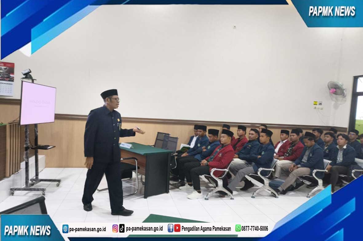 Hakim Pamong Pengadilan Agama Pamekasan – Bapak Ahmad Farih Shofi Muhtar, S.H.I., M.H., membuka Kegiatan Materi ini pada pukul 08.45 WIB dengan pembacaan Basmalah. Selanjutnya Wakil Ketua Pengadilan Agama Pamekasan Bapak Jamaludin Muhamad, S.H.I., M.H., memberikan Materi kepada para Mahasiswa. Kegiatan ini merupakan bagian dari program Praktikum Peradilan mereka yang bertujuan untuk memberikan wawasan praktis mengenai sistem peradilan agama.